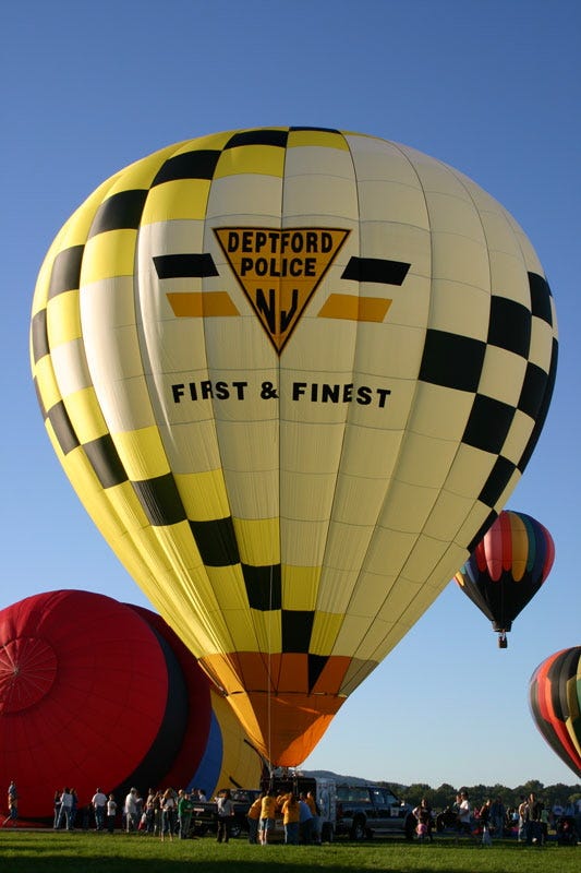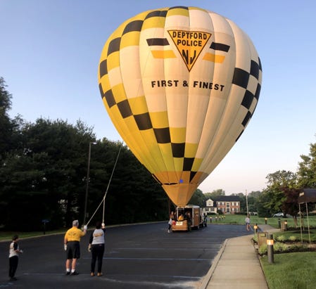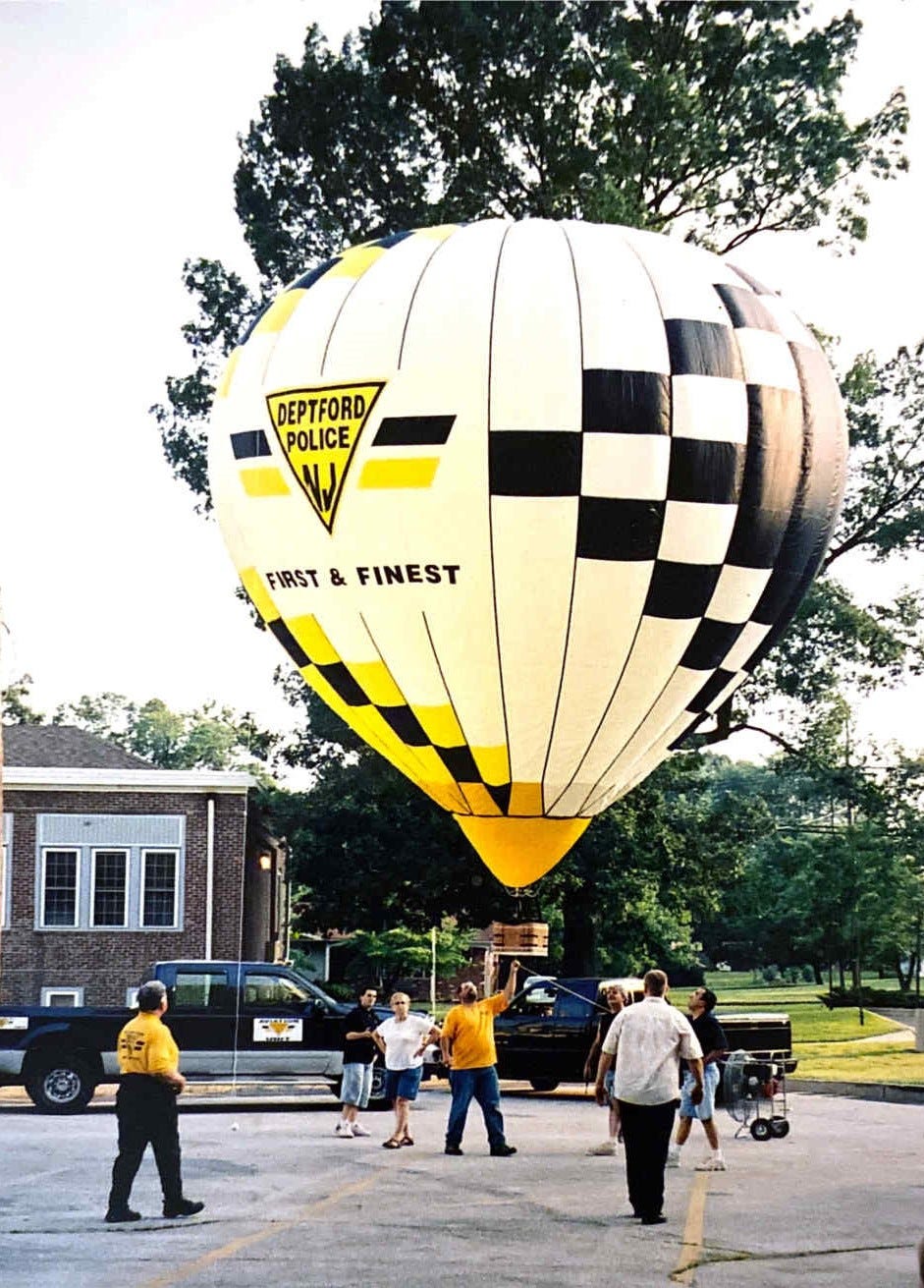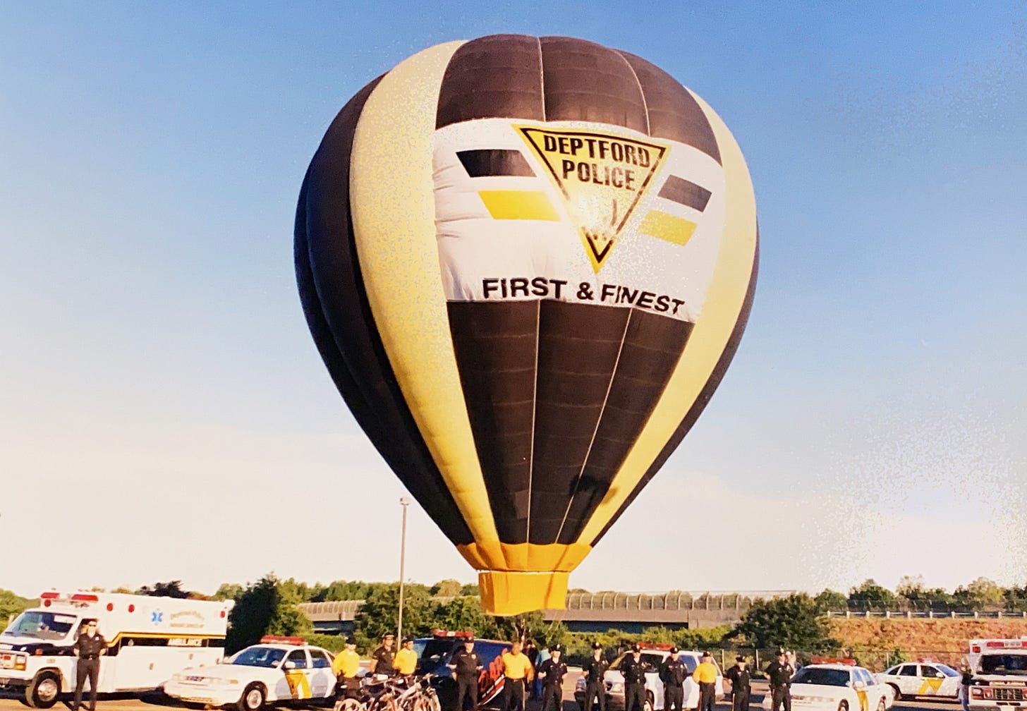 Steve took this newfound interest and ran with it to create Deptford’s First and Finest hot air balloon program. The inspiration for the name came from the voyage made by Jean-Pierre Blanchard in 1793. The hot air balloon became Deptford’s logo for the town’s vehicles and many of its welcome, street, and landmark signs.