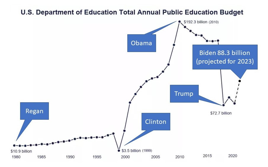 NEA partners with monopolistic unions, tax-exempt foundations, woke organizations, the Nefarious National Council of Churches, and collectivist groups. It lobbies for court decisions and big-spending federal programs. For example, Biden’s 2023 Budget request is for 88.3 billion. It includes funding for children with disabilities (IDEA), pandemic recovery, early childhood education, Pell Grants, Title I, and work assistance, among other programs. Rest assured, this big Matzo Ball budget has a lot of earmarks to benefit the NEA-ED-FTA circular money pit.