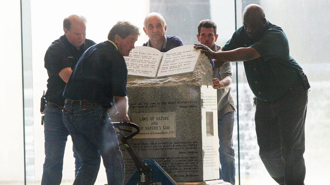 It is necessary to analyze the case of Judge Moore to understand the assault. On August 1, 2001, Alabama State Chief Justice Moore placed a 5,200-pound monument in the Alabama State Judicial Building dome. This stone obelisk of the Ten Commandments also contains inscriptions of our founding documents. By October 2001, plaintiffs had filed two separate lawsuits against Chief Justice Moore. The above three “players” represented the plaintiffs. They charged that the display of the Ten Commandments is unconstitutional and “offensive.” This case festered until U.S. District Judge Myron Thompson ordered the monument’s removal in August 2003.