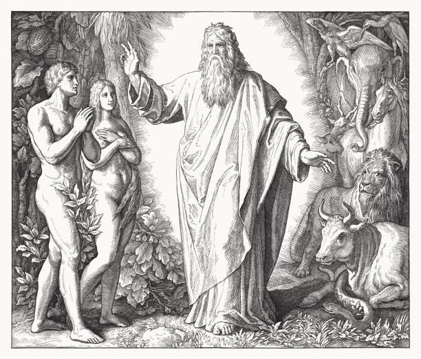 And out of the ground the LORD God formed every beast of the field, and every fowl of the air; and brought them unto Adam to see what he would call them: and whatsoever Adam called every living creature, that was the name thereof. | And Adam gave names to all cattle, and to the fowl of the air, and to every beast of the field; but for Adam there was not found an help meet for him. | And the LORD God caused a deep sleep to fall upon Adam, and he slept: and he took one of his ribs, and closed up the flesh instead thereof; And the rib, which the LORD God had taken from man, made he a woman, and brought her unto the man. | And Adam said, This is now bone of my bones, and flesh of my flesh: she shall be called Woman, because she was taken out of Man. | Therefore shall a man leave his father and his mother, and shall cleave unto his wife: and they shall be one flesh. | And they were both naked, the man and his wife, and were not ashamed.